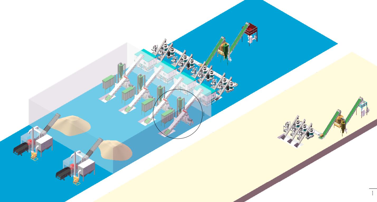 破碎工段—細(xì)粉工段—烘干工段—制粒工段--冷卻工段—包裝工段—除塵工段(需求不同選擇的機(jī)器也是不同的)。